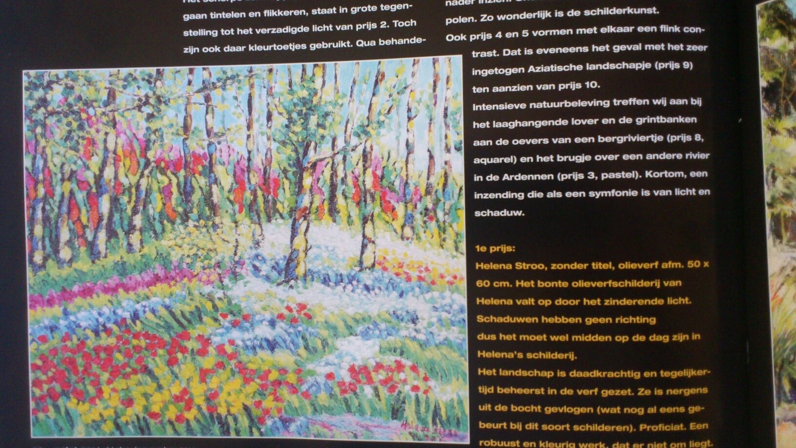 In de zomer van 2012 organiseerde het kunsttijdschrift Palet een schilderscompetitie met het onderwerp Landschap. Helena zond een werk in met als thema “bos symfonie”. Een krachtig en kleurrijk schilderij waarop een bos op expressieve wijze wordt uitgebeeld en zijn kleuren prijsgeeft. Het oktober nummer van Palet publiceerde de resultaten. Helena kreeg de eerste prijs!