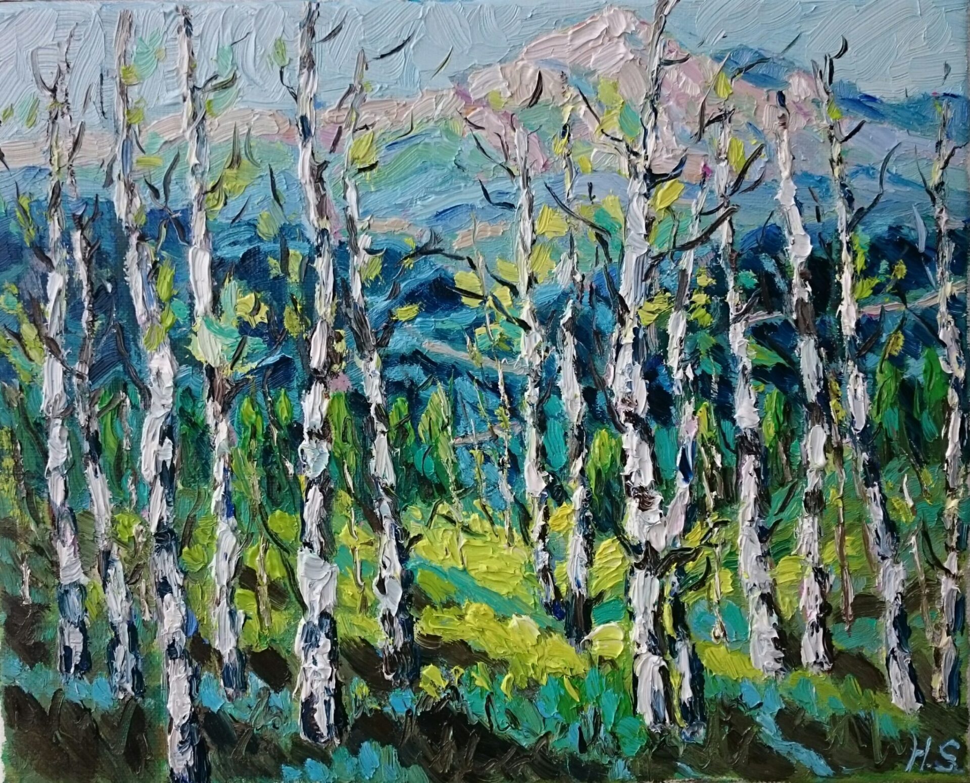 Tussen de olijfgaarden en eucalyptus, in de Ligurische Alpen berken met stammen zo wit als de sneeuw op de bergtoppen.