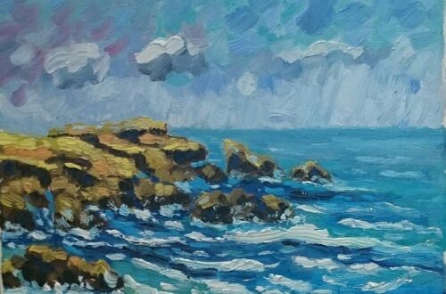 Na een mooie dag, kan het weer ineens omslaan. Zo’n moment schilderde ik in Normandië, als Strand Trouville met naderend onweer.…