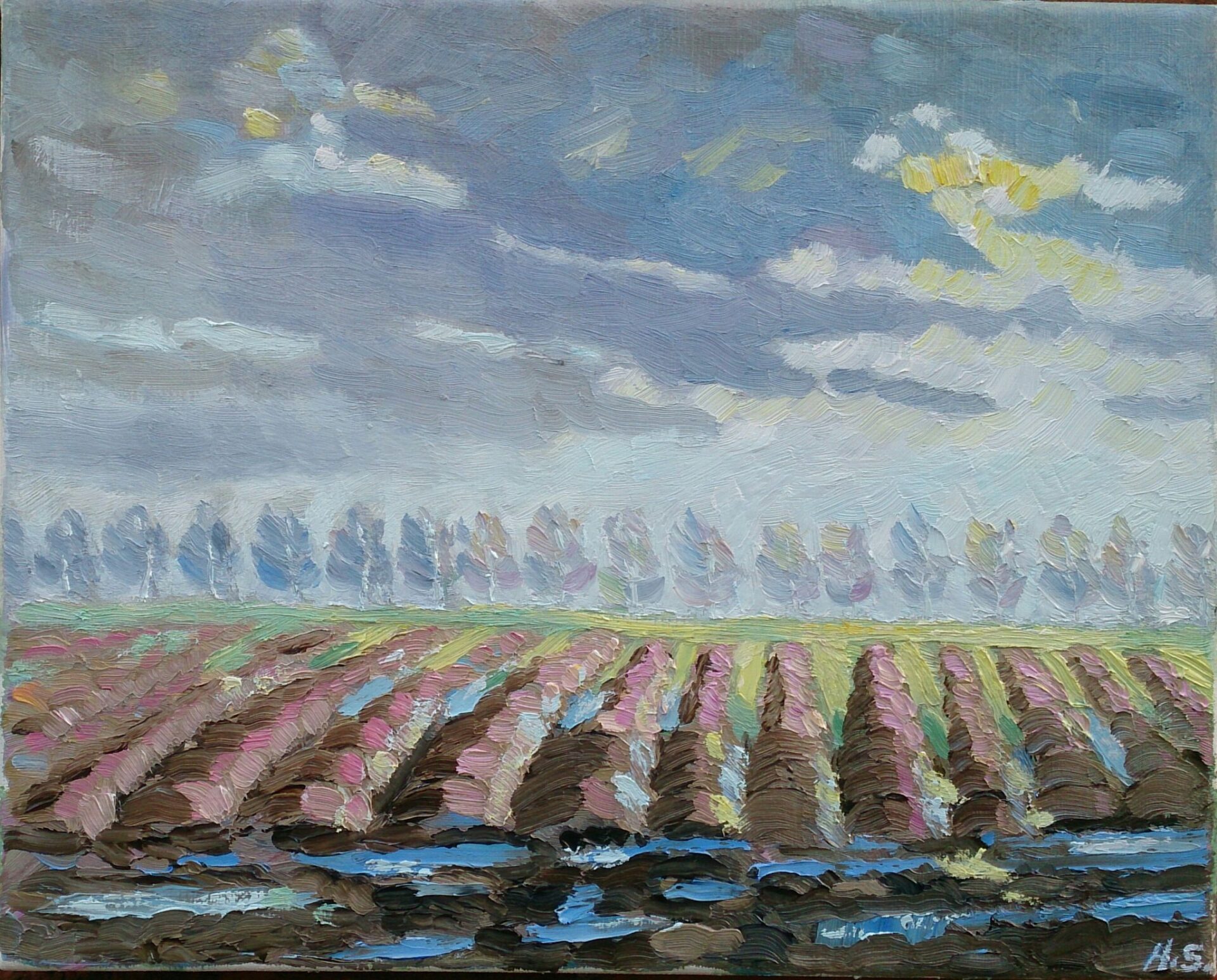 Regen gevolgd door zonneschijn geeft mooie effecten om te schilderen, zoals hier de Polders in Zeeuws-Vlaanderen.